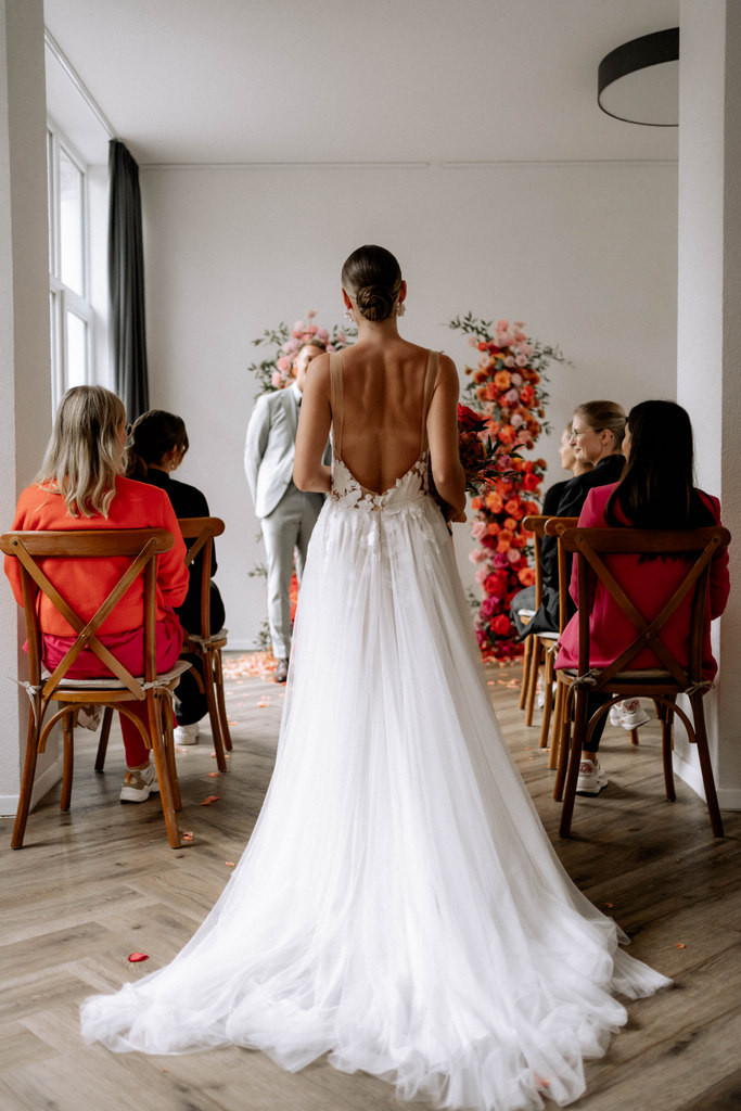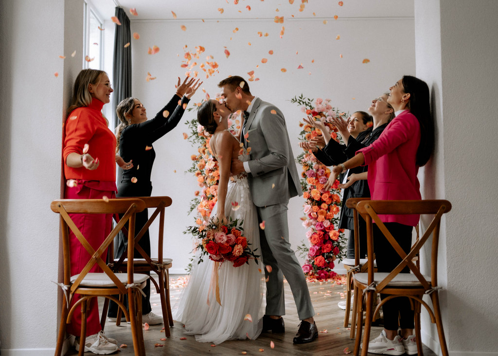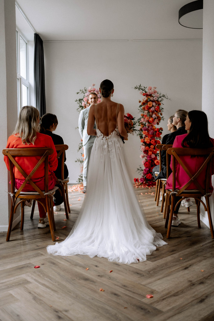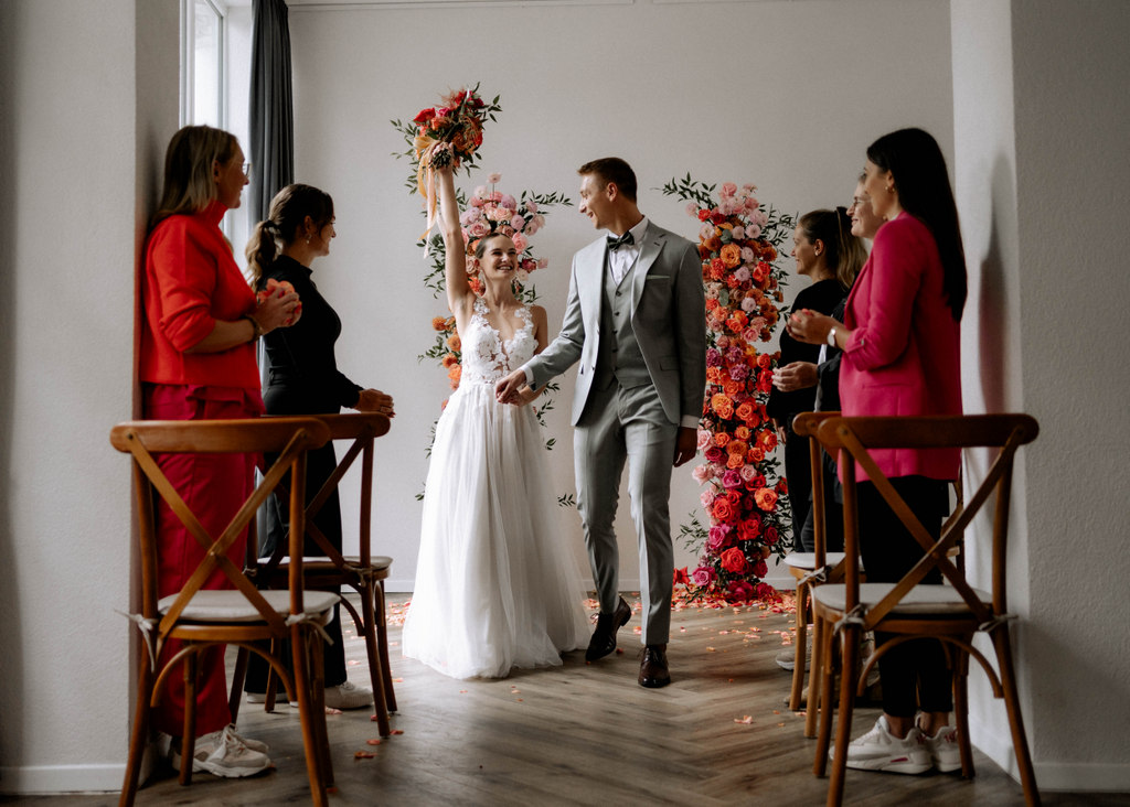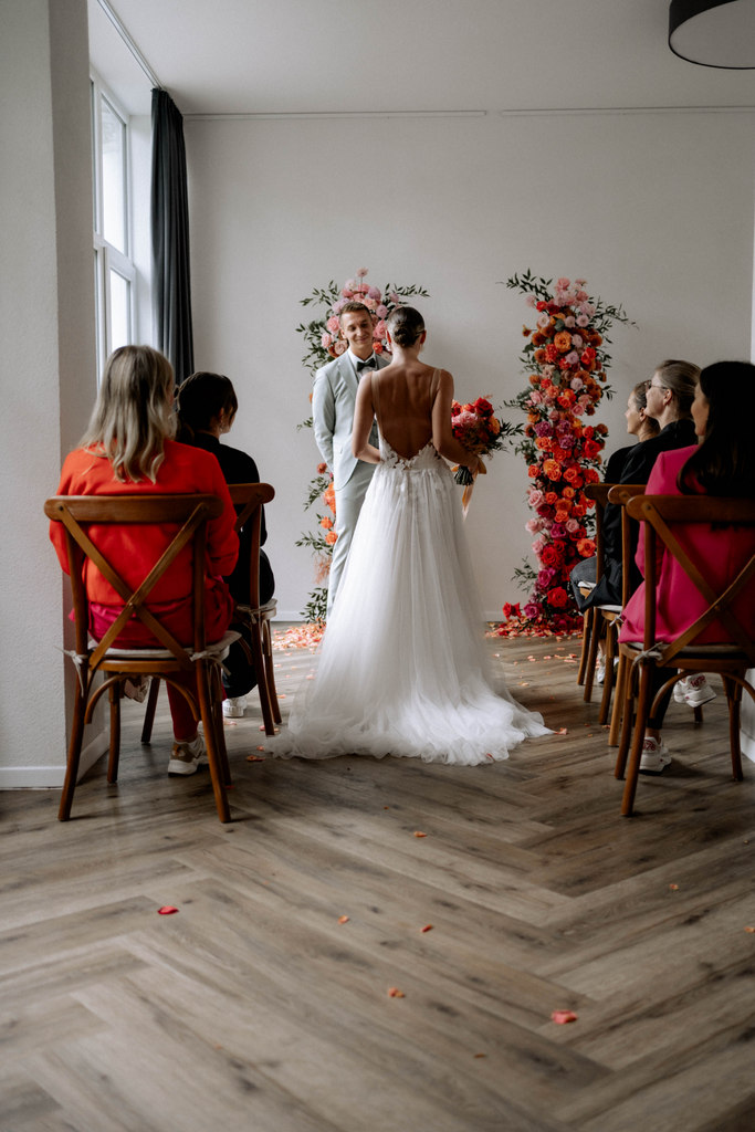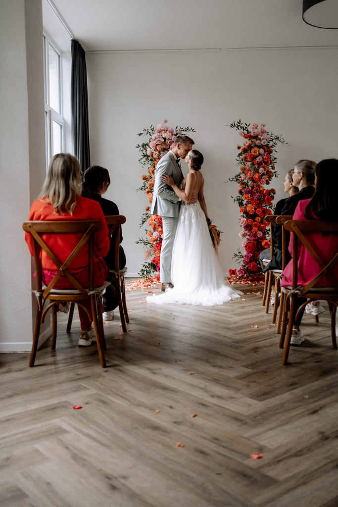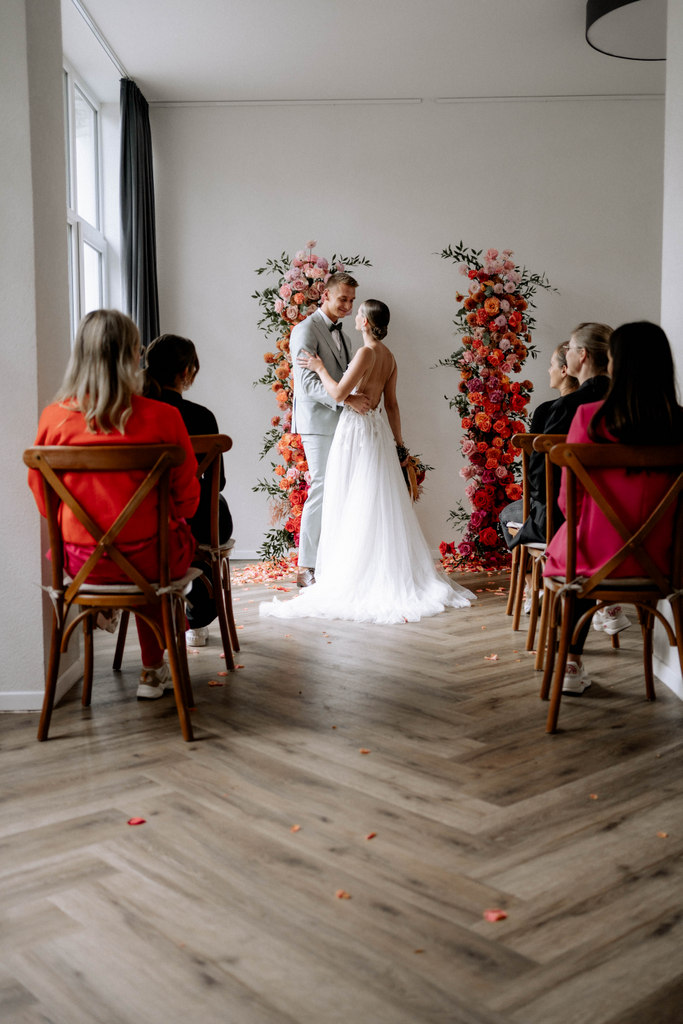 Dieses Setting zeigt eindrucksvoll, wie man in einer Indoor-Location eine gemütliche, elegante und äußerst persönliche Atmosphäre erschaffen kann – gerade für kleinere Hochzeiten. Für mich als Hochzeitsfotografin für freie Trauungen und moderne Hochzeitskonzepte war es besonders wichtig, alle dekorativen Elemente und emotionalen Momente authentisch einzufangen.