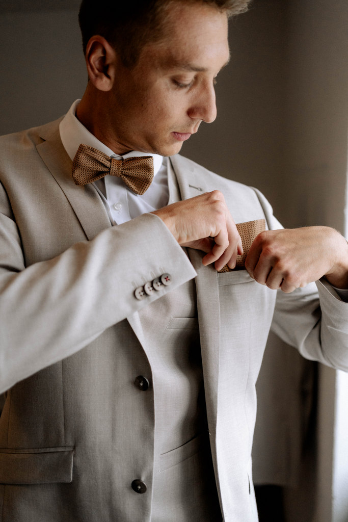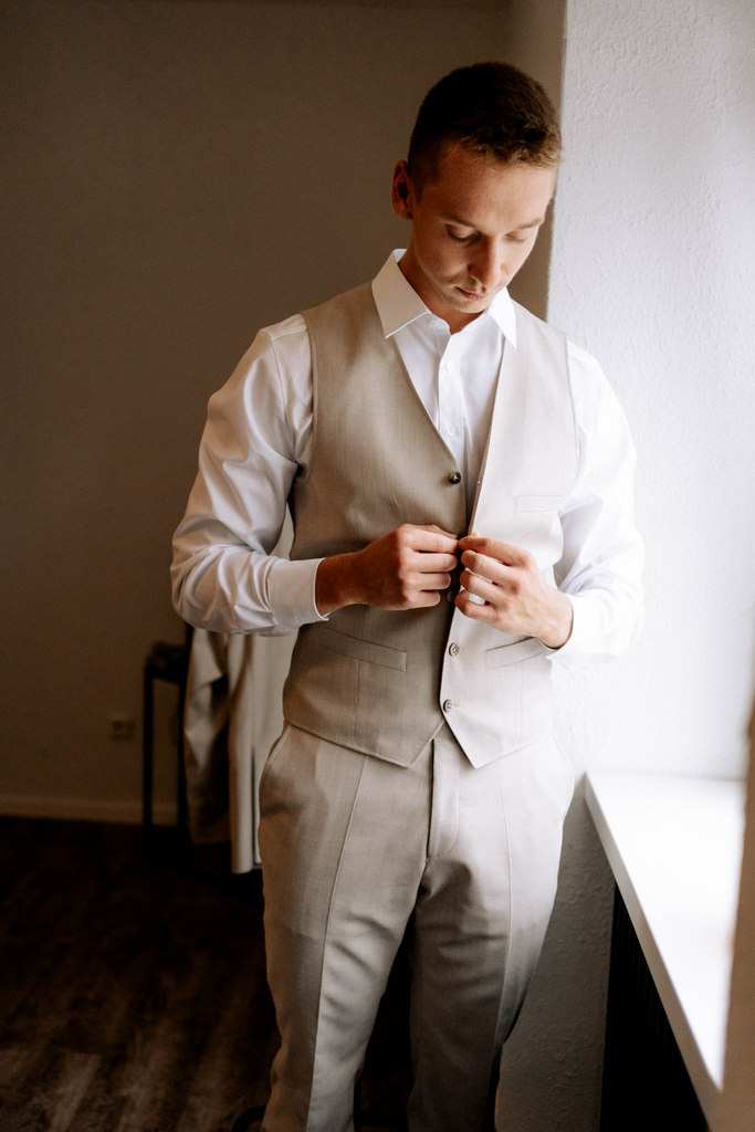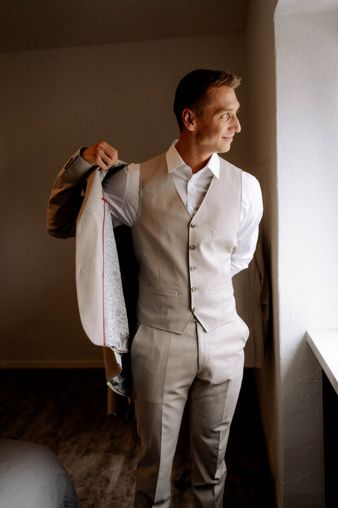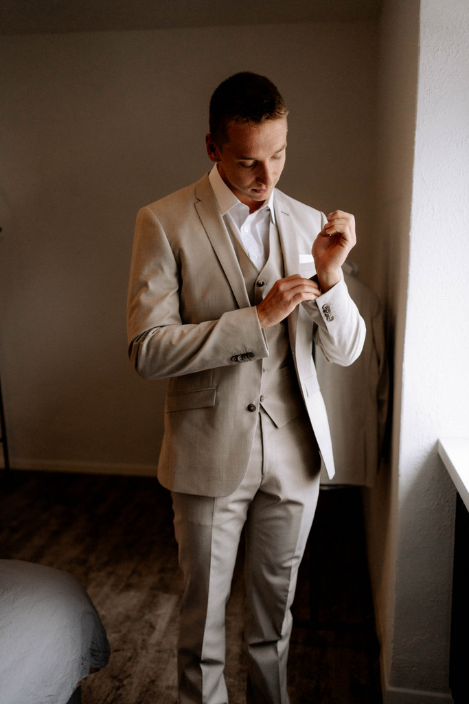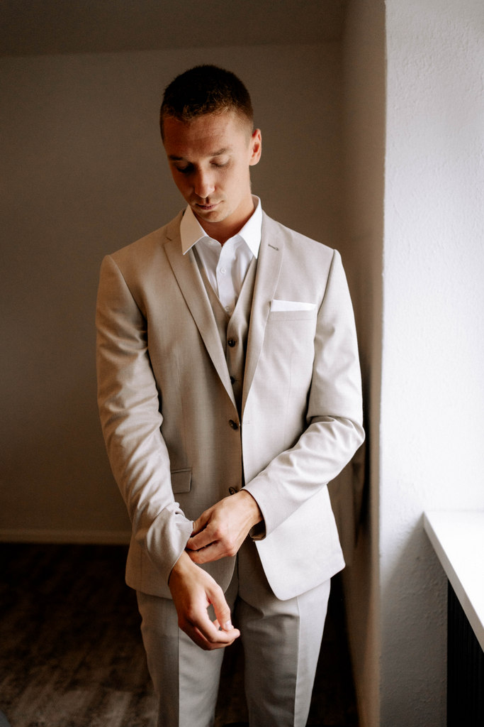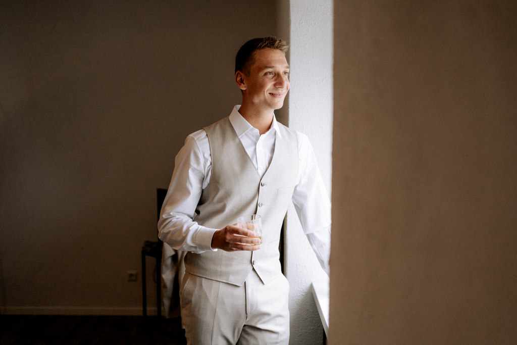 Auch der Bräutigam wurde vor Ort gestylt, sodass beide ganz entspannt und ohne Hektik in ihren Tag starten konnten.
