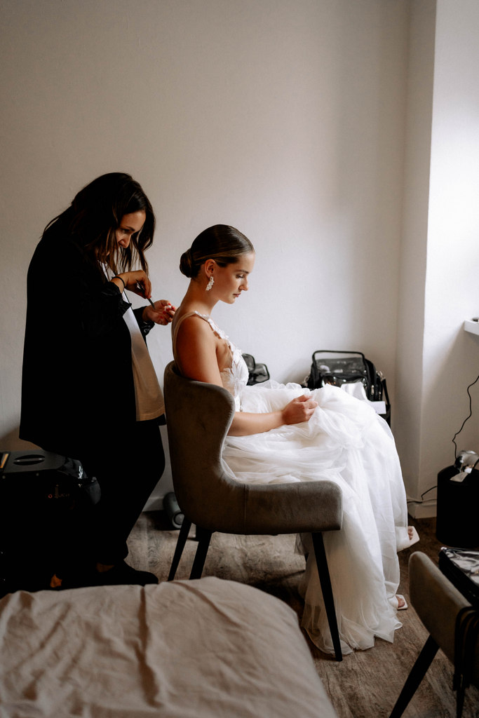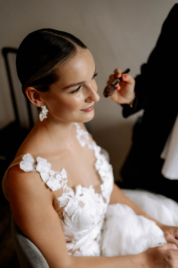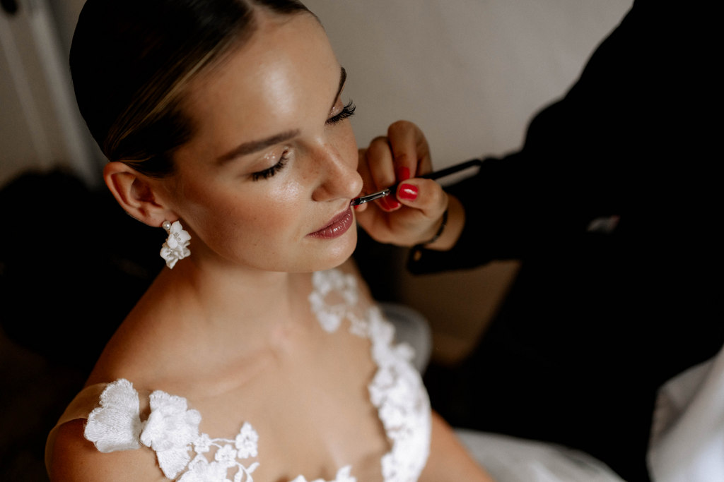 Professionelle Hair- & Make-up Artists zauberten ein modernes, natürliches Styling, das hervorragend zu einer emotionalen, freien Trauung passt.