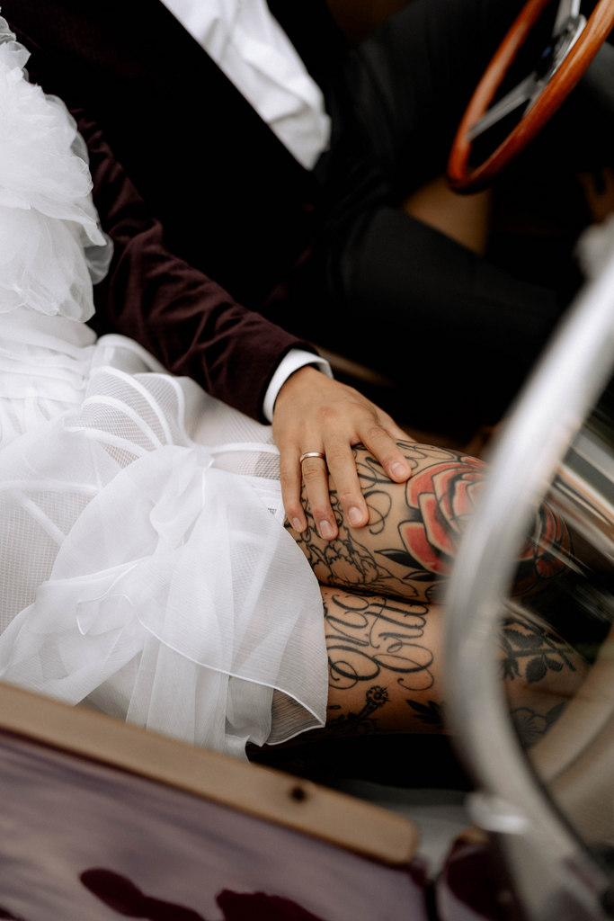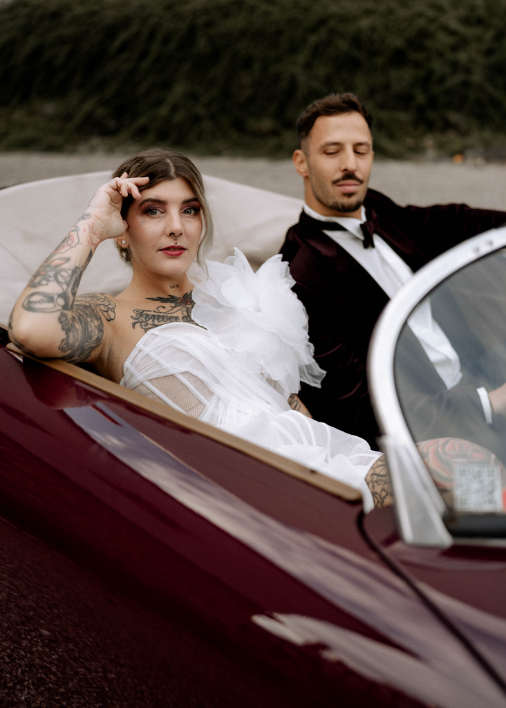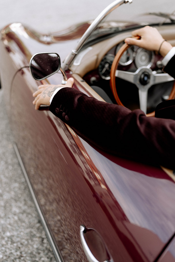 Editorial Brautpaar-Shooting mit Oldtimer-Porsche