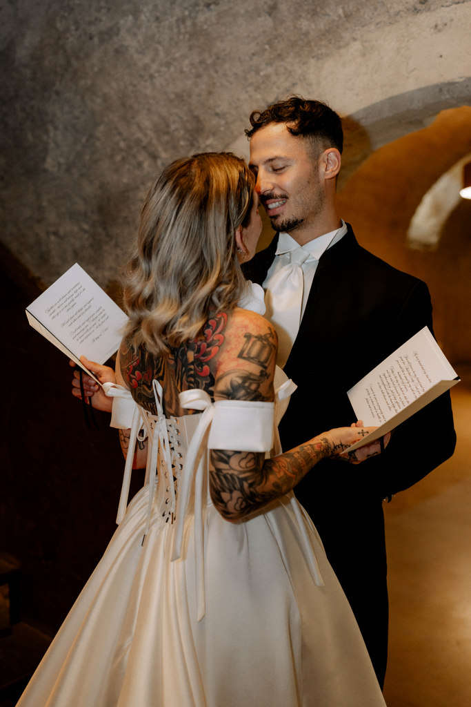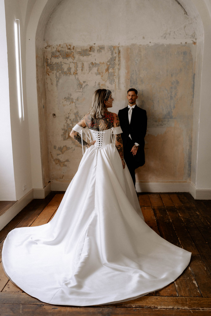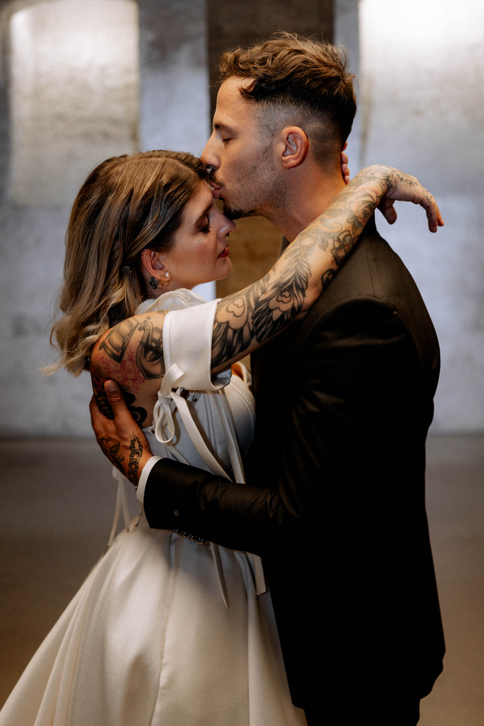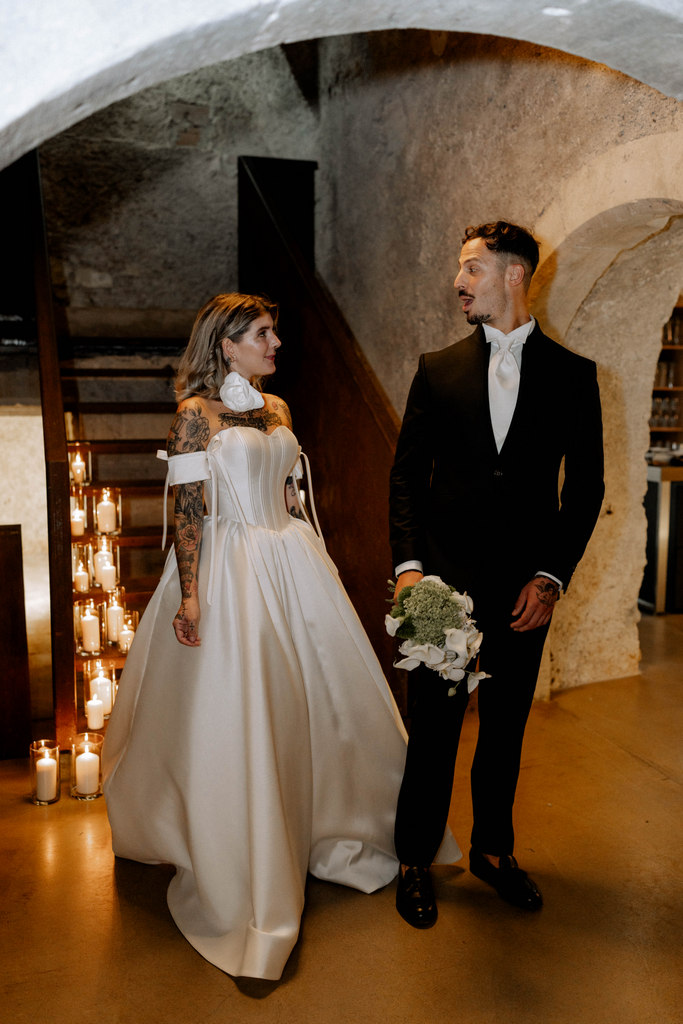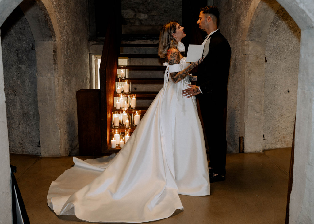 Ein Ort voller Geschichte, Wärme und Tiefe – perfekt für Emotionen, die man nicht gestellt inszenieren kann. Als sich das Brautpaar zum ersten Mal sah, tauschten die beiden persönliche, herzerwärmende Worte aus – kleine Ehegelöbnis-Momente, die das Shooting besonders emotional machten.