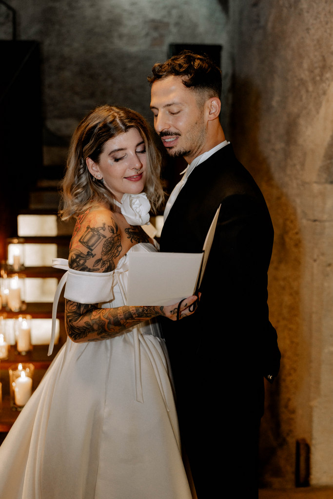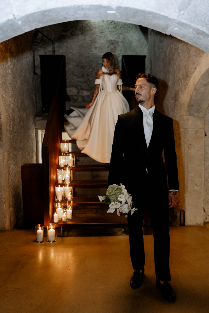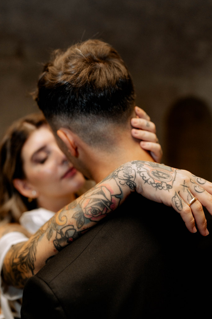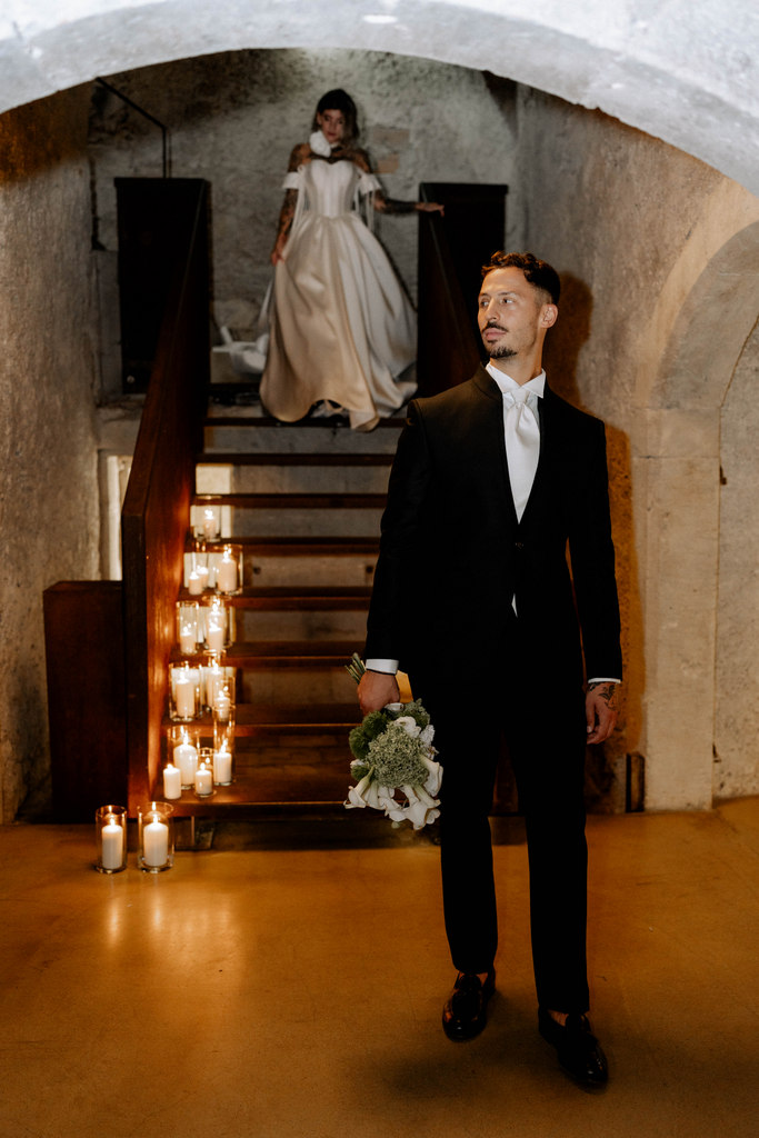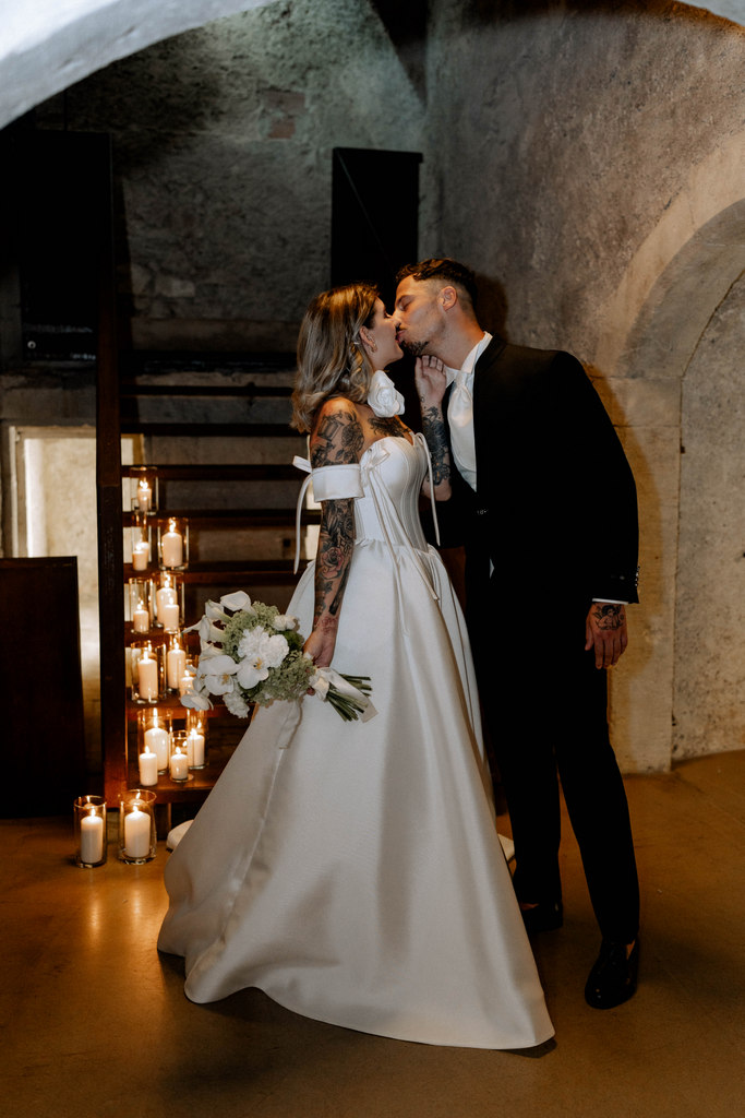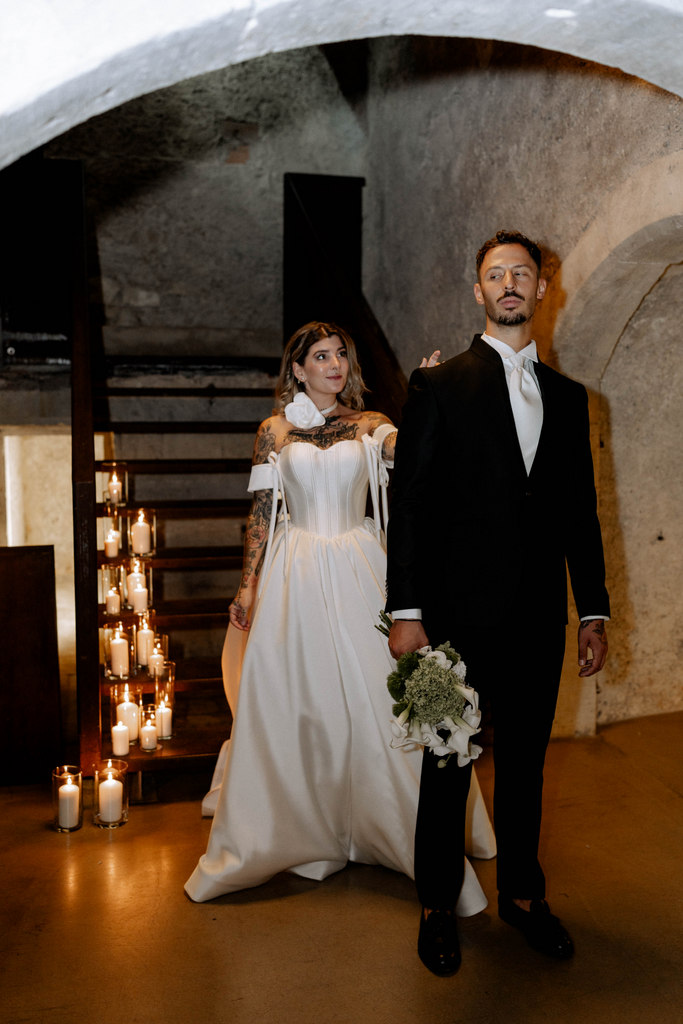 Ein Ort voller Geschichte, Wärme und Tiefe – perfekt für Emotionen, die man nicht gestellt inszenieren kann. Als sich das Brautpaar zum ersten Mal sah, tauschten die beiden persönliche, herzerwärmende Worte aus – kleine Ehegelöbnis-Momente, die das Shooting besonders emotional machten.