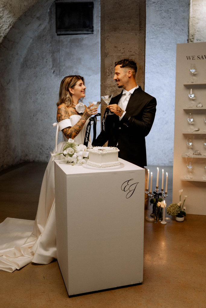 Hochzeitstorte, Sekt-Turm & stilvolle Details